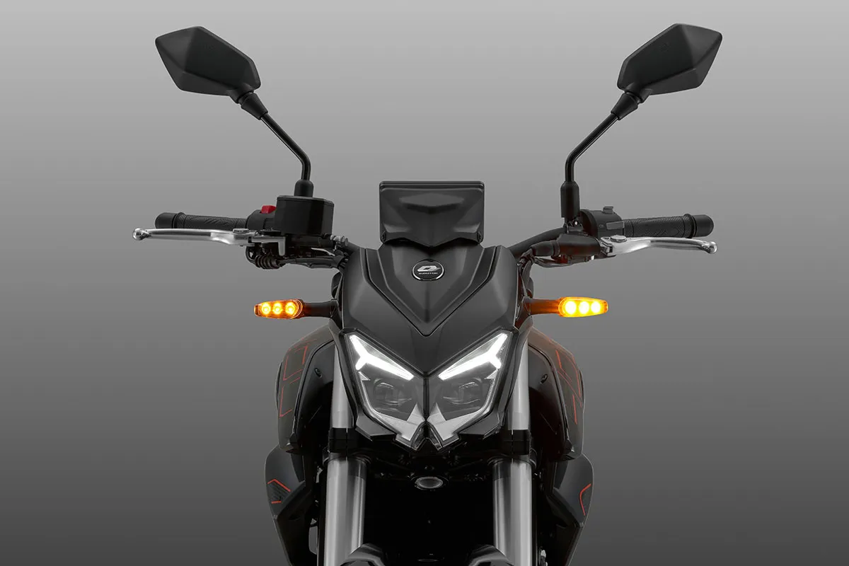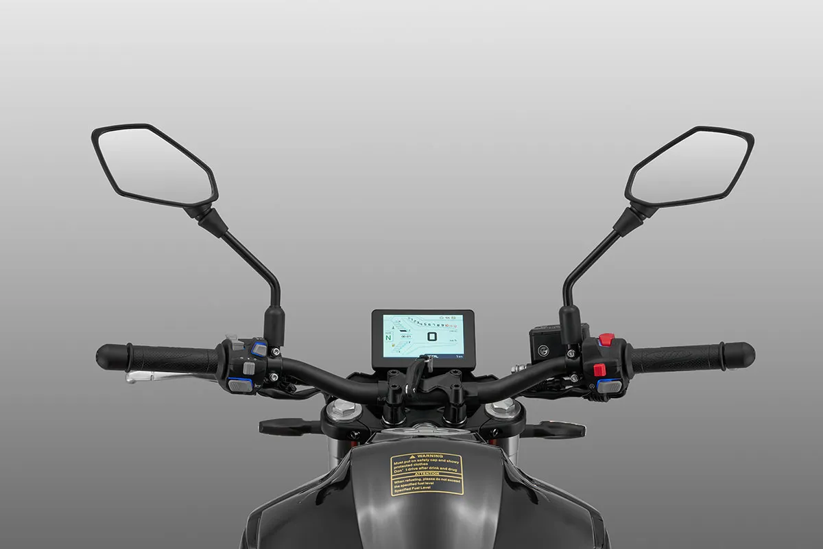 Destaca por su diseño moderno y agresivo, con iluminación full LED y un panel digital TFT a color que entrega toda la información al piloto.