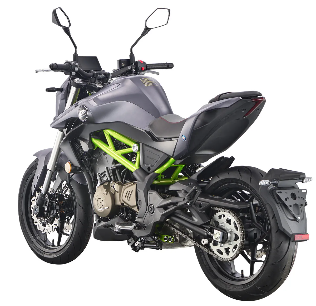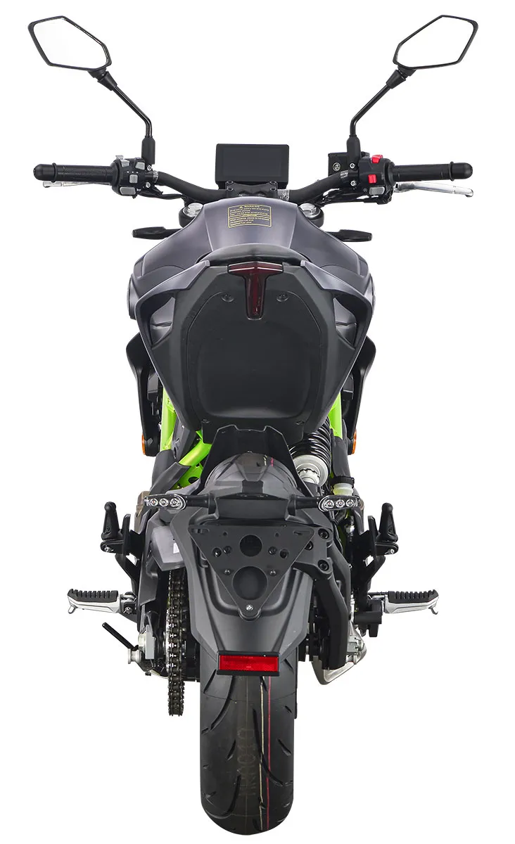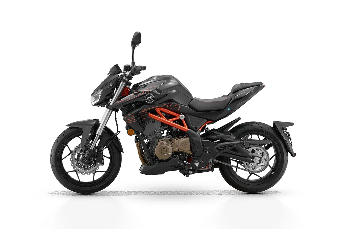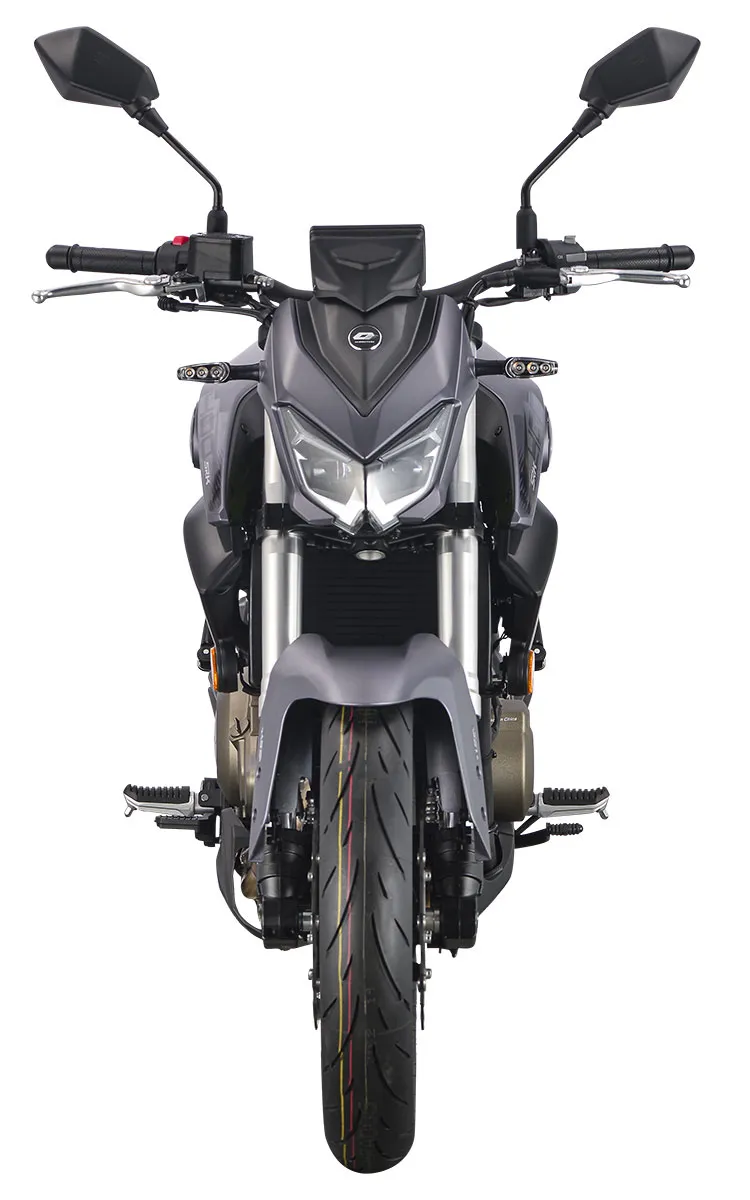 La SRK 400 es una naked deportiva con motor bicilíndrico de 400 cc refrigerado por líquido, ideal para ciudad y carretera. Su chasis ligero, suspensión invertida, amortiguador ajustable y frenos ABS en ambas ruedas garantizan control y seguridad en cada trayecto.